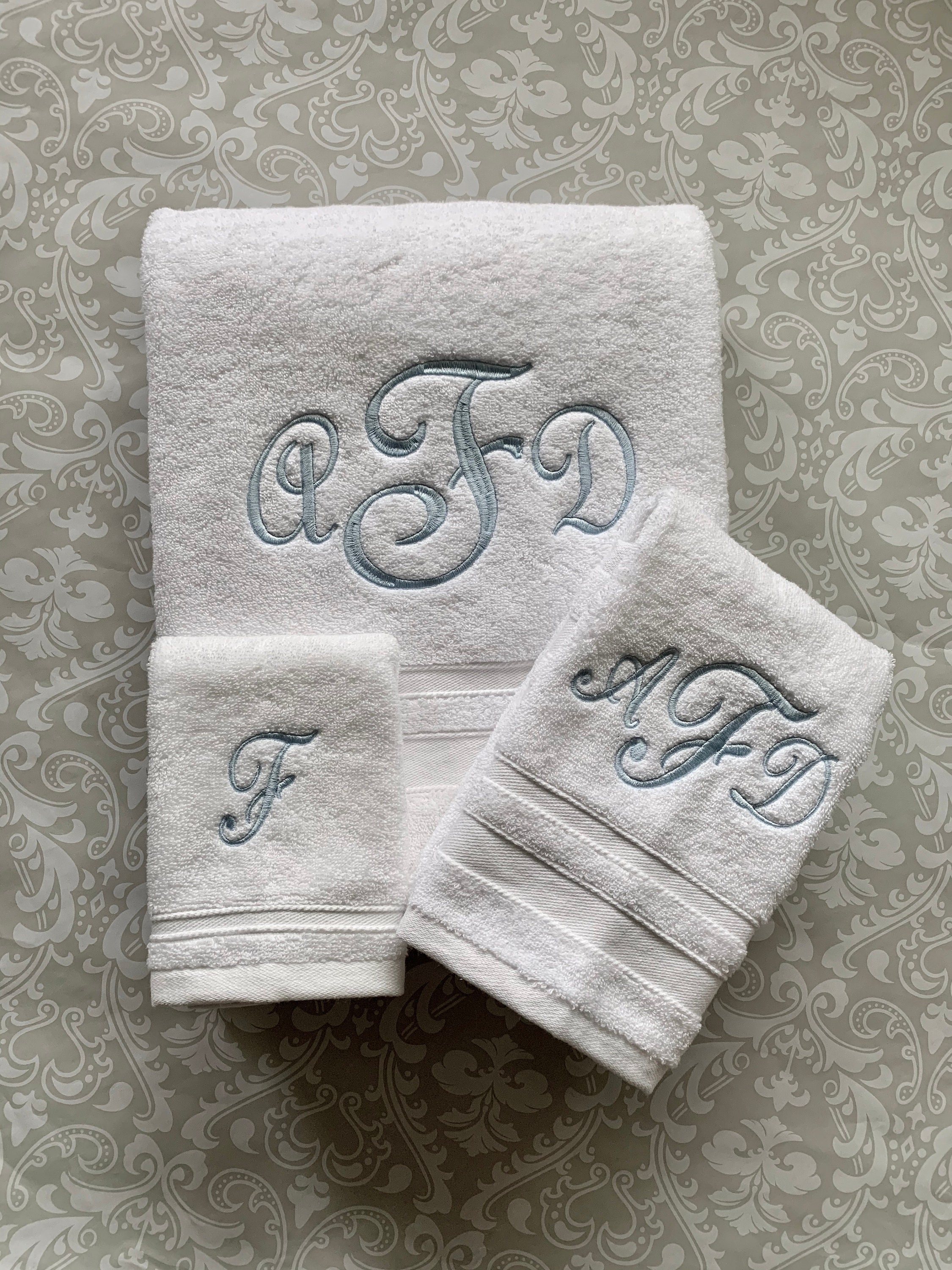 Monogrammed towel set bath towel personalized towel set great for wedding gift house warming gift home decor.